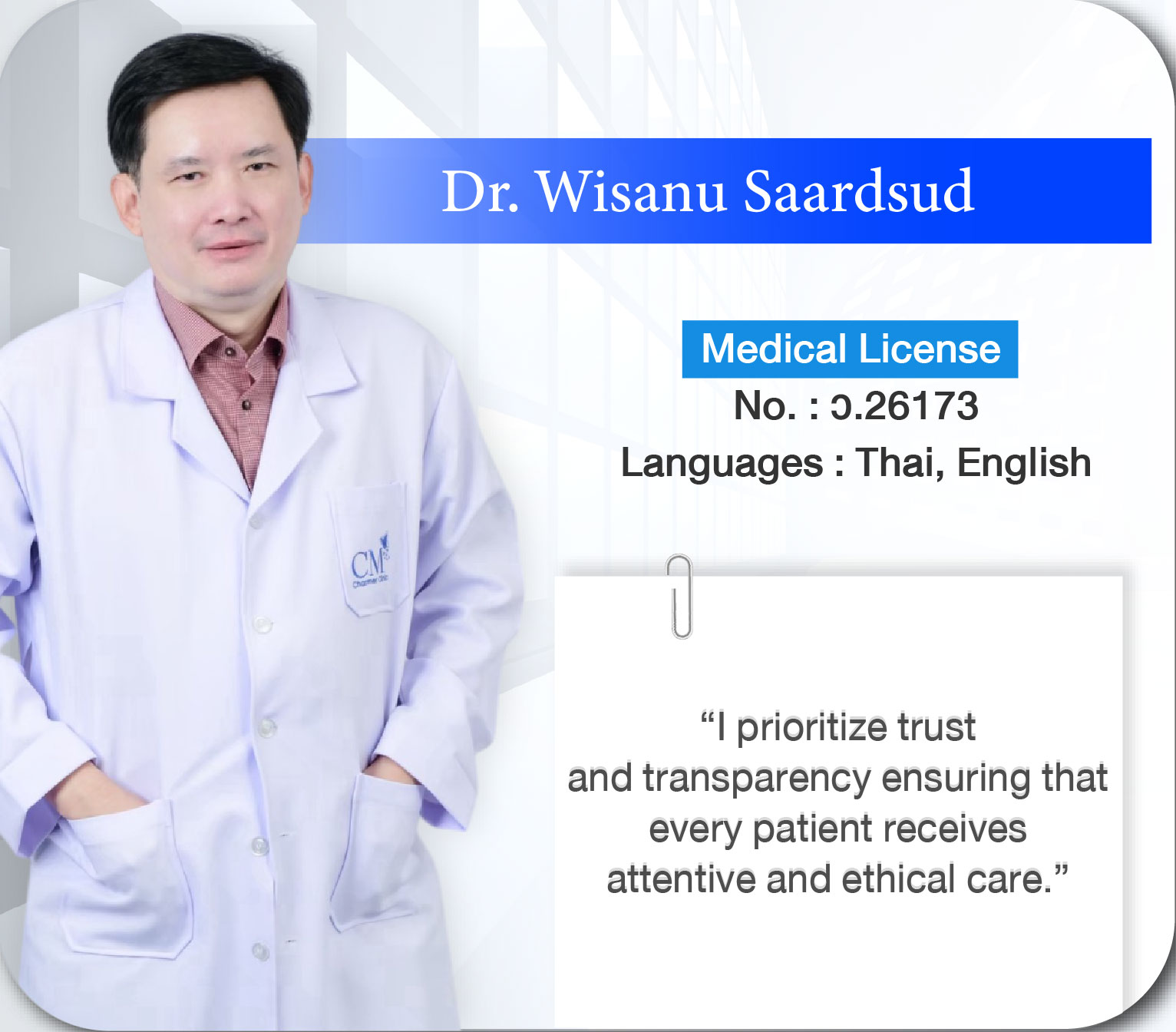 All treatments are performed by licensed medical doctors in accordance with Thailand Ministry of Public Health regulations. We prioritize patient safety, proven techniques, and natural-looking outcomes.
